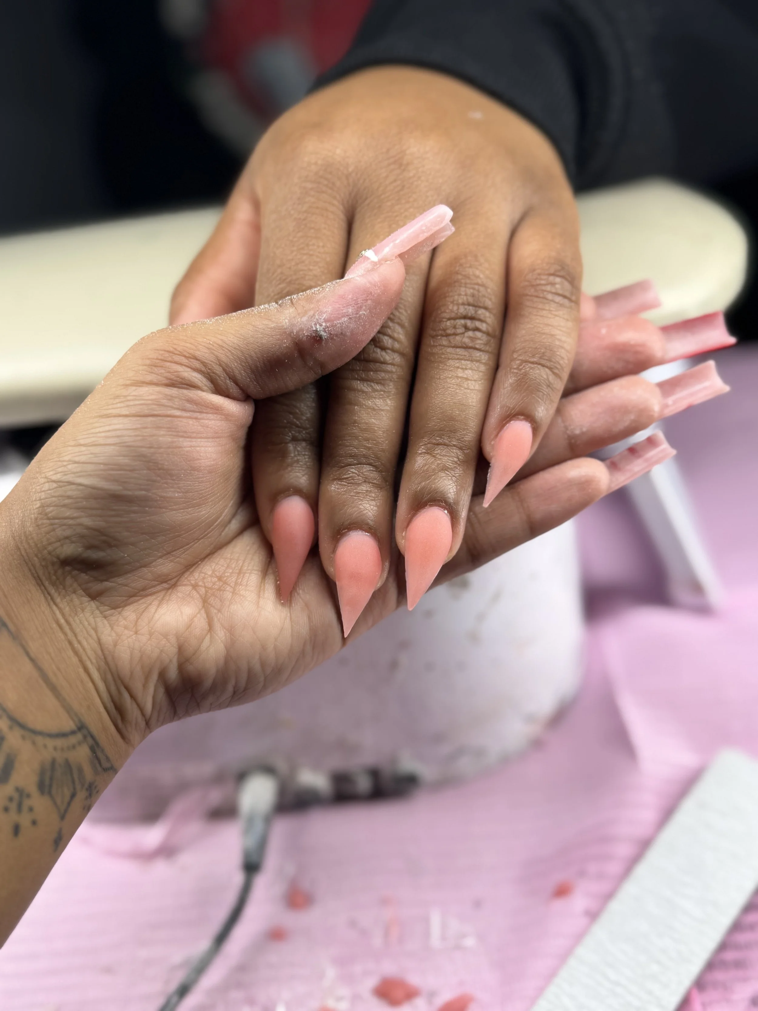 A favorite by NailsBySpelset. Achieves a perfect medium of pink and slight nude.